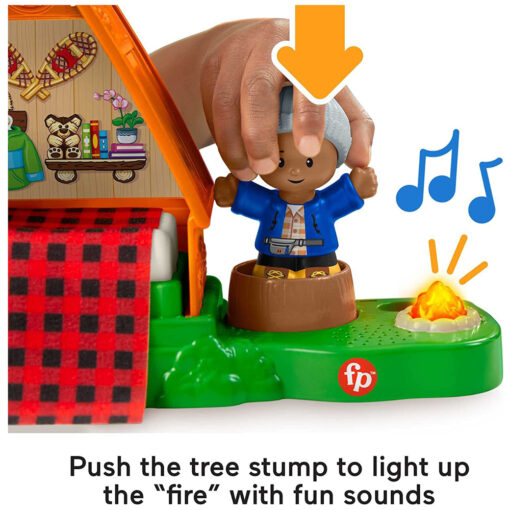 Young storytellers can create their own fun camping adventures with this Little People A-Frame Cabin playset from Fisher-Price. When kids press the tree stump, the camp fire lights up with cool sounds, setting the scene for “outdoor” fun. Then toddlers can help the camper “roast” marshmallows over the pretend fire before snuggling up in bed with soft blanket.