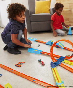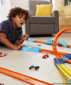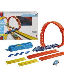 The Hot Wheels Track Builder Unlimited Adjustable Loop Pack features a three-in-one loop that kids can adjust to make more challenging and more exciting. The spiral loop connects to three unique exit tracks which can connect to other Track Builder sets (sold separately) and vary the intensity of the stunt. This Adjustable Loop Pack presents exciting opportunities for kids 6 years and older to design epic builds and have hours of fun. One 1:64 scale Hot Wheels car is included. Colors and decorations may vary.