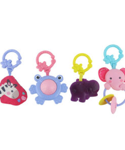 4 Replacement Toys with Links ~ Pink Elephant, Purple Frog, Pink Zebra Crinkle and Purple Hippo Teether